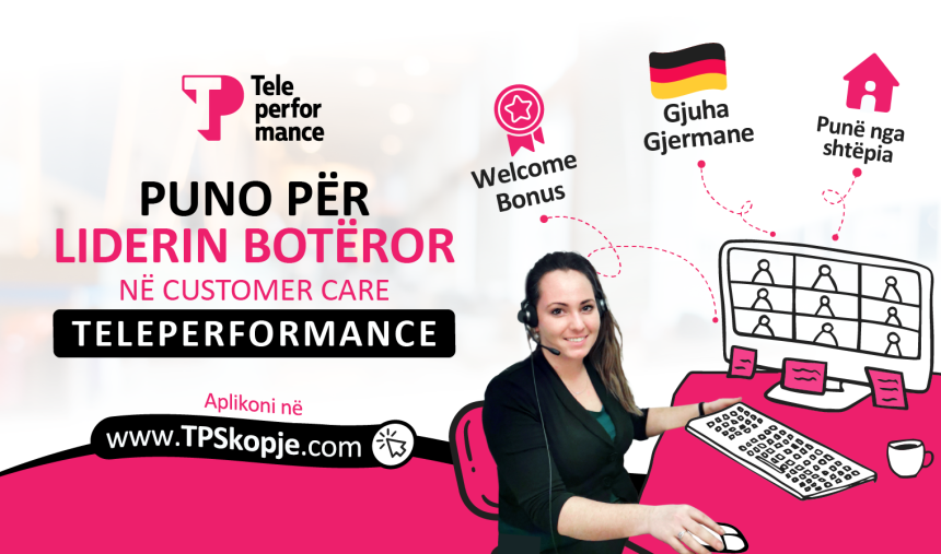 Shkup, 19 prill – Teleperformance – një kompani gjermane dhe lidere në fushën e ofrimit të mbështetjes së klientit dhe shërbimeve digjitale, vazhdon zgjerimin e saj në Maqedoni, duke sjell shumë përfitime dhe një bonus mirëseardhjeje për çdo punonjës të ri. Për të arritur këtë, kërkohet vetëm një kusht: njohja e gjuhës gjermane.