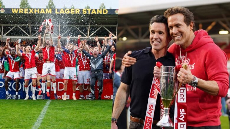 Kujtojmë që Wrexham u ble në vitin 2020 nga dy yje të Hollywoodit, Ryan Reynolds dhe Rob McElhenney. Deri atëherë, klubi ishte në pronësi të tifozëve dhe 95 për qind e tyre morën vendimin për t’ia shitur klubin dy aktorëve të famshëm.