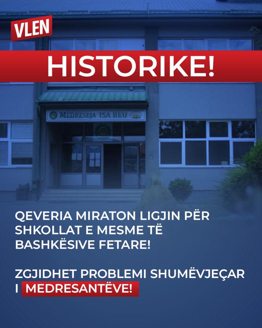 Shkup, 15 korrik – Deputeti i koalicionit VLEN, Adnan Azizi, ka njoftuar me krenari miratimin nga Qeveria të Propozim-Ligjit për Shkollat e Mesme të Komuniteteve Fetare, që njeh në mënyrë të barabartë diplomat e Medresesë “Isa Beu” në Shkup me ato të çdo shkolle të mesme në Maqedoninë e Veriut, përcjell zhurnal.mk.