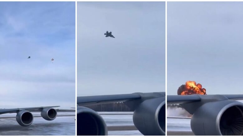 Në video shihet aeroplani F-35 duke u rrokullisur dhe rënë në mënyrë spirale në drejtim të tokës, duke shkaktuar një shpërthim dhe zjarr të madh.