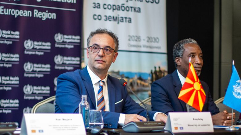 Shkup, 3 shtator – Sot u mbajt promovimi i Strategjisë për bashkëpunim me Organizatën Botërore të Shëndetësisë për periudhën 2026–2030, ku morën pjesë ministri i Shëndetësisë, Azir Aliu, ministrja e Arsimit dhe Shkencës, Vesna Janevska, ministri i Politikës Sociale, Demografisë dhe Rinisë, Fatmir Limani, si dhe përfaqësuesi i OBSH-së, Akim Ali, koordinatorja për Kombet e Bashkuara, Rita Kolumbia, dhe Lesli Miler nga UNICEF.