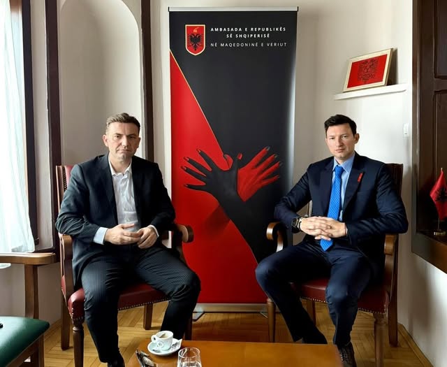 Shkup, 13 shkurt – Ambasadori i Shqipërisë në Shkup, Denion Meidani, ka pritur në takim nënkryetarin e BDI, Bujar Osmani.