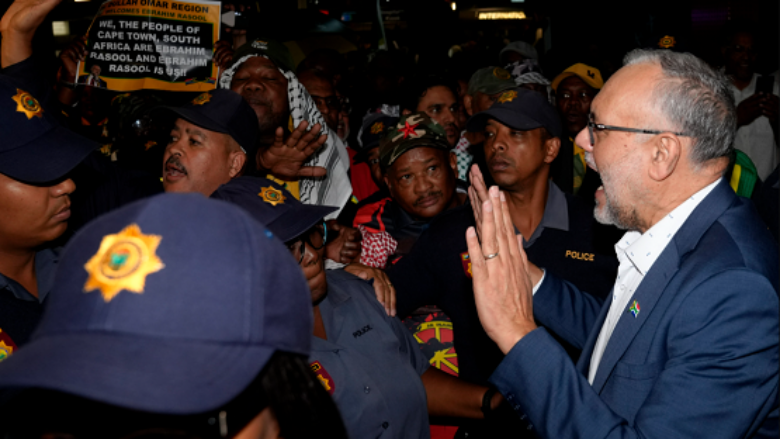 Turmat në aeroportin ndërkombëtar të Cape Town rrethuan Ebrahim Rasool dhe gruan e tij Rosieda ndërsa dolën në terminalin e mbërritjeve në qytetin e tyre dhe atyre u duhej një shoqërim policie për t’i ndihmuar ata të lëviznin nëpër ndërtesë, shkruajnë mediat e huaja, përcjell Telegrafi.
