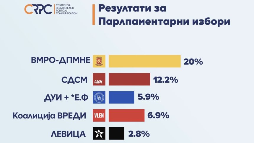 VMRO-DPMNE sipas anketës ka rejting prej 20% ndërsa dukshëm prapa është LSDM me 12.2% rejting.
