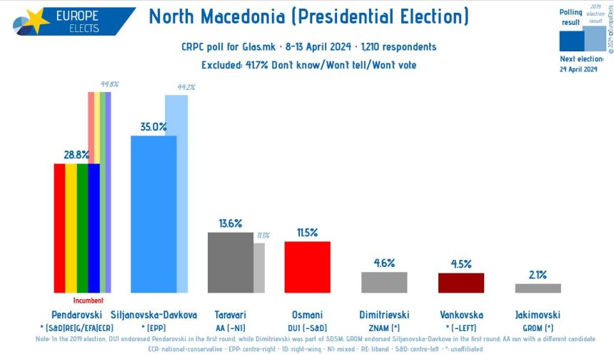 Shkup, 19 prill – Organizata prestigjioze evropiane e sondazheve të lidhura me zgjedhjet në vendet evropiane dhe më gjerë “Europe Elects” publikoi anketën lidhur me zgjedhjet presidenciale në Maqedoninë e Veriut.