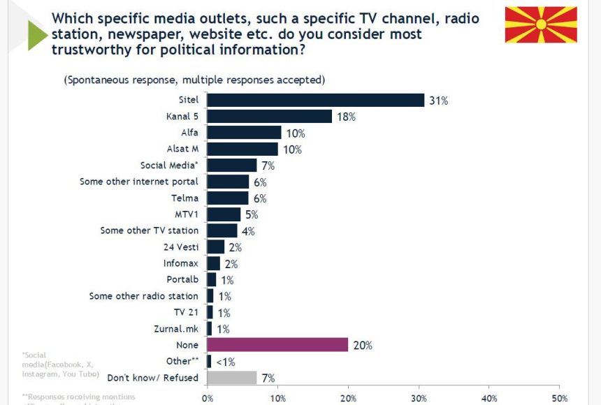 Në pyetjen kryesore të anketës për atë se “cilit medium i besoni më së shumti në Maqedoninë e Veriut”, rezultatet në listën e mediave shqiptare u shquan si më poshtë: