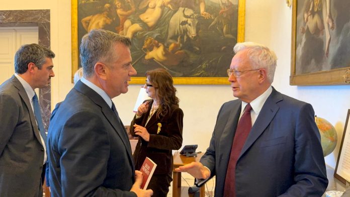Kryetari i Grupit Parlamentar të Partisë Socialiste, Taulant Balla gjatë vizitës në Romë zhvilloi një takim me kryetarin e Komisionit për Punët e Jashtme dhe Çështjet Europiane të Dhomës së Deputetëve, Giulio Tremonti.