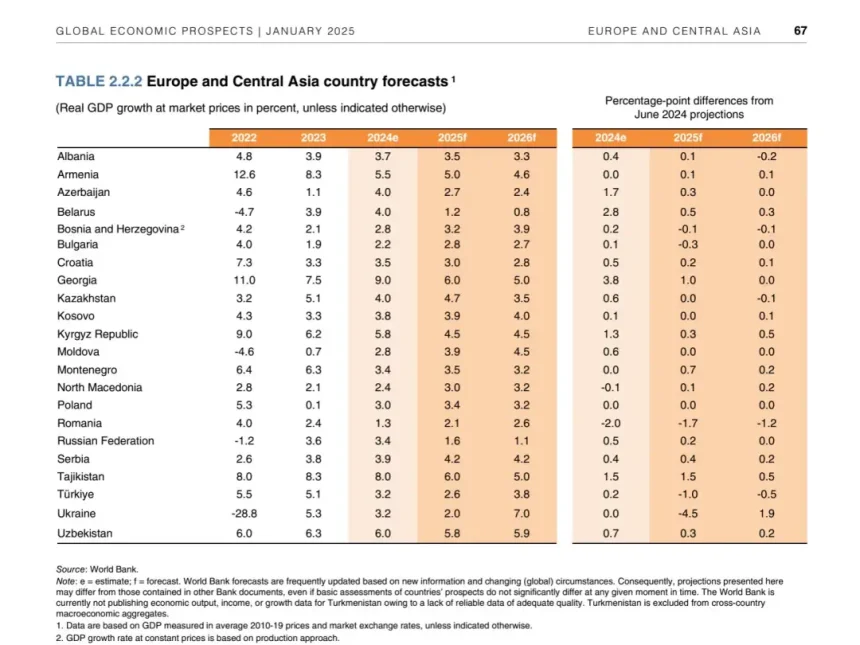 Banka Botërore ka rishikuar përpjetë parashikimin për rritjen e ekonomisë së Maqedonisë në vitin 2025 dhe 2026. Në raportin e saj të fundit për perspektivat ekonomike globale, Banka Botërore vlerëson se ekonomia e vendit do të shënojë rritje prej 3,0 për qind këtë vit, që është 0,1 për qind më shumë se parashikimi i mëparshëm. Për vitin 2026 parashikohet një rritje prej 3,2 për qind, ose një rritje prej 0,2 për qind krahasuar me vlerësimin e mëparshëm.