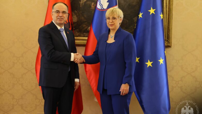 Presidenti i Shqipërisë Bajram Begaj në konferencën e përbashkët për shtyp me presidenten e Sllovenisë, Natasha Pirc Musar, vlerësoi mbështetjen në procesin e integrimit evropian të dhënë për vendin tonë.