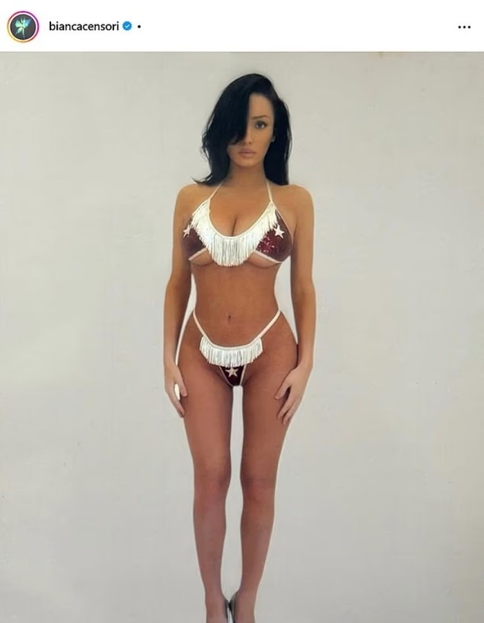 Gruaja e reperit Kanye West, Bianca Censori, u rikthye në rrjetet sociale me një postim joshës, duke pozuar me bikini të holla para një sfondi minimalist.