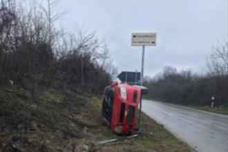 Aksident në rrugën e vjetër Shkup-Tetovë: Vetura përfundon përmbys jashtë rruge
