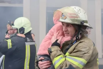 Pamje prekëse nga Kharkivi – policia ukrainase shpëton fëmijët pas sulmit me dron rus në kopsht