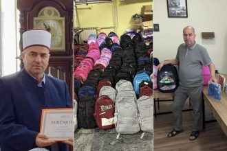 Imami i Kondovës, ef. Nevzat Ameti, shpërndan 300 çanta për nxënësit e gjithë Dërvenit