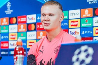 Erling Haaland ishte në konferencën për shtyp përpara ndeshjes së dytë të…