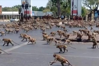 Mijëra majmunë të llojit ‘makak’ kanë “pushtuar” një qytet në Tajlandën qendrore,…