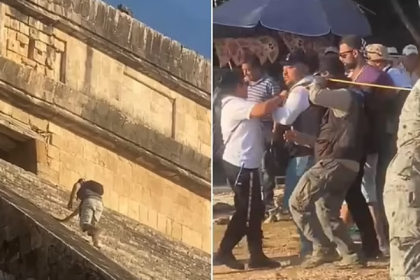 Momenti kur turisti sulmohet nga një turmë e zemëruar pasi u ngjit në piramidën e lashtë edhe pse ishte e ndaluar