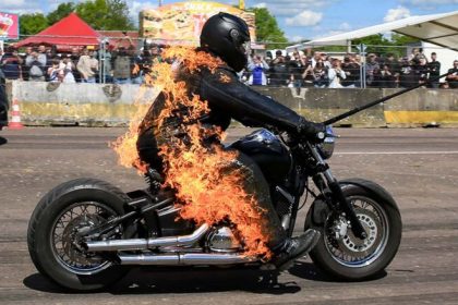 Në flakë dhe mbi dy rrota, rekordi i çmendur i francezit