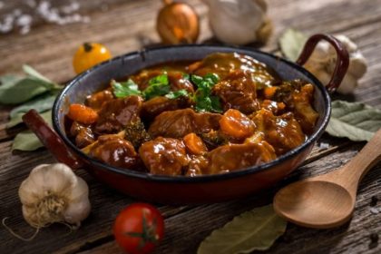 Spezzatino është ushqim i popullarizuar italian që i ngjan gullashit Mishi pritet…