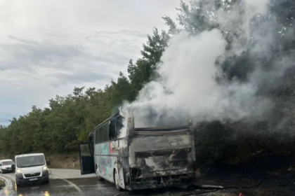 Një autobus është përfshirë nga zjarri pasditën e sotme në fshatin Duhël…