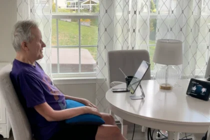Mark, një 64-vjeçar me sklerozë laterale amiotrofike ose ALS, përdor Amazon Alexa…