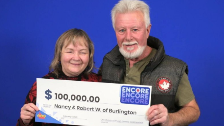 Korpusi i Lojërave dhe Loterive të Ontario tha se banorët e Burlingtonit, Nancy dhe Robert Whitten, fituan një çmim prej 69,712.16 dollarë kur ata ndeshën gjashtë numrat e fundit nga shtatë numrat e Encore në tërheqjen e Lotto 6-49 më 21 dhjetor 2024.