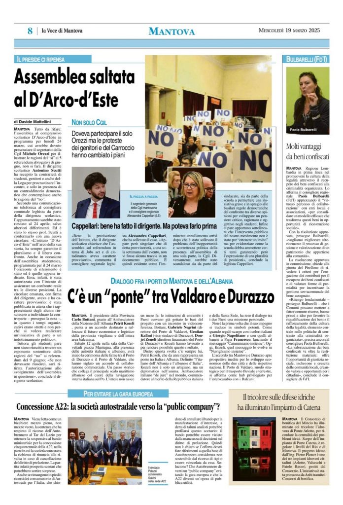 Publikuar nga gazeta “Zëri i Mantovës” (Voce di Mantova), më 19 mars 2025.