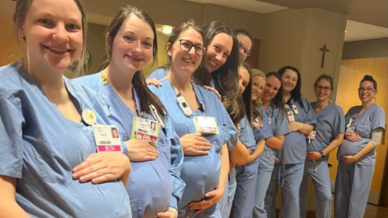 E rrallë, 14 infermiere janë shtatzënë në të njëjtën kohë në qendrën e grave dhe foshnjave të spitalit HSHS St. Vincent në Green Bay, Wisconsin të SHBA-së.