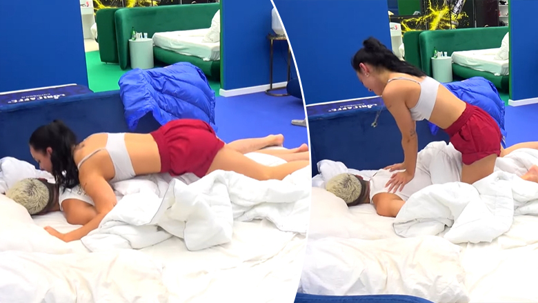 Ajo u afrua me butësi pranë tij dhe e përkëdheli me një masazh, duke e shoqëruar gjithçka edhe me disa puthje të ëmbla, në një moment që për publikun ishte mjaft emocional dhe i dashur.