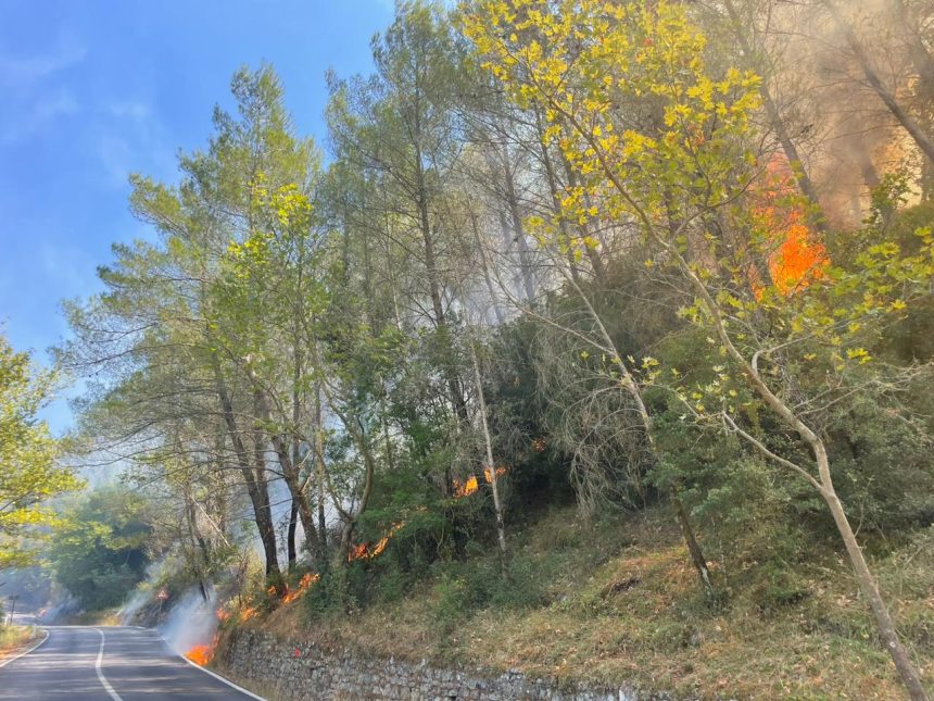 Helikopterë, ekipe zjarrfikëse dhe forca policore po vijojnë operacionin intensiv për shuarjen e zjarrit.