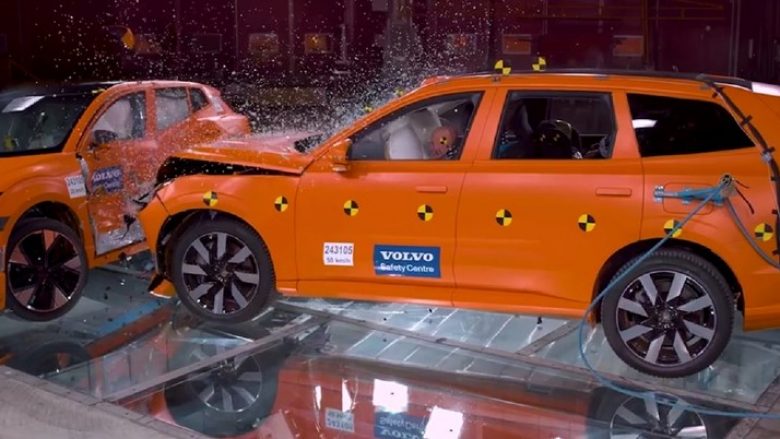 Volvo-të më të vegjël dhe më të mëdhenj elektrikë, përkatësisht modelet EX30 dhe EX90, morën pjesë në simulimin e përplasjes.