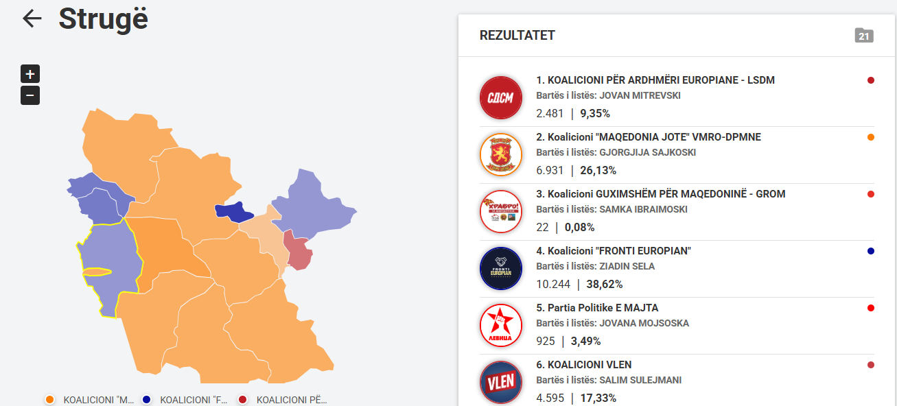 Cili ishte rezultati i votave bazuar në zgjedhjet e fundit parlamentare në Strugë?