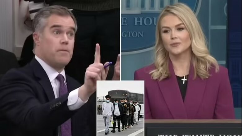 Peter Alexander u përball me Karoline Leavitt gjatë një konference shtypi në Shtëpinë e Bardhë të martën në lidhje me përpjekjet e Trumpit për dëbim masiv, i cili ka parë që Emigracioni dhe Zbatimi i Doganave (ICE) të arrestojnë mijëra emigrantë pa dokumente, transmeton Telegrafi.