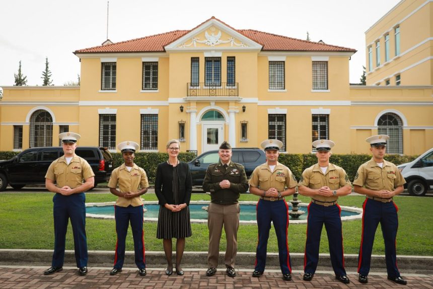 E Ngarkuara me Punë e SHBA në Tiranë, Nancy VanHorn mirëpriti gjeneralin Cavoli në ambasadë, ku u takua me pjesëtarët e Detashmentit të Gardës së Marinsave të ambasadës për t’i falënderuar për shërbimin e tyre.