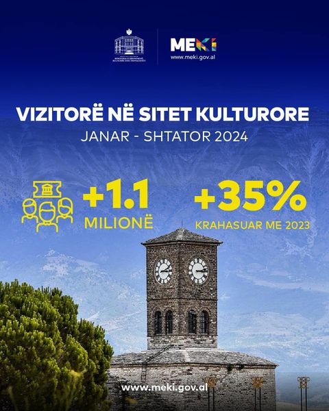 Prej janarit e deri në shtator të këtij viti, monumentet e kulturës e objekte të trashëgimisë kulturore u vizituan prej 1,092,584 personash. Krahasuar me të njëjtën periudhë të vitit 2023, kjo shifër është 35% më e lartë. Sitet kulturore në janar-shtator 2024 patën 40% më shumë turistë të huaj dhe 31% më shumë vizitorë vendas.