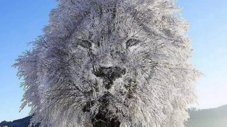 Kur vëzhgoni këtë imazh, ka të ngjarë të shihni ose një pemë të pluhurosur nga bora ose fytyrën e një luani.