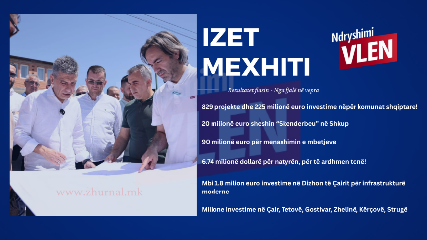 Shkup, 24 korrik – Zëvendëskryeministri i Parë i Maqedonisë së Veriut dhe Ministër i Mjedisit Jetësor dhe Planifikimit Hapësinor, Izet Mexhiti, për brenda një viti në qeveri ka arritur të thithë një buxhet rekord drejt realizimit të projekteve me interes të qytetarëve, e sidomos për vendbanimet shqiptare që rrallë herë më parë dikush e ka bërë të njëjtën. Me përvojën e tij politike, Mexhiti në çdo ndarje të mjeteve financiare për projekte që i ka planifikuar qeveria, ka arritur të marrë hisen që u takon shqiptarëve”, shkruan “Zhurnal.mk”.