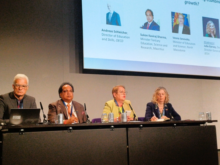 “Në vitin 2017, prezantuam konceptin e arsimit dual gjegjësisht të mësuarit përmes punës, dhe ai po zgjerohet vazhdimisht. Kompanitë janë të përfshira në zhvillimin e aftësive praktike tek të rinjtë, dhe sot 70% e numrit të përgjithshëm të nxënësve të shkollave të mesme mësojnë në shkollat e mesme profesionale të Maqedonisë”, theksoi Janevska, duke theksuar se në arsimin e lartë fokusi është edhe në shkencat teknike, por se ka hapësirë për thellimin e bashkëpunimit ndërmjet universiteteve dhe sektorit të biznesit.