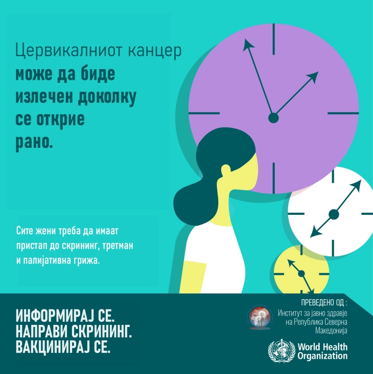 Shkup, 21 janar – Janari është muaji i përkushtuar për ngritjen e vetëdijes për kancerin e qafës së mitrës – një nga llojet më të shpeshta dhe më të parandalueshme të kancerit te femrat. Kanceri i qafës së mitrës zhvillohet ngadalë, gjë që mundëson zbulimin e hershëm përmes ekzaminimeve të rregullta gjinekologjike dhe skrining testeve, siç është PAP-testi dhe testimi për papilloma virus njerëzor (HPV), theksuan sot nga Instituti i Shëndetit Publik (ISHP).