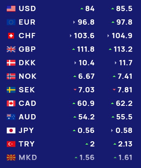 Ndërsa paundi britanik do blihet me 111.8 lekë dhe do shitet me 113.2 lekë.
