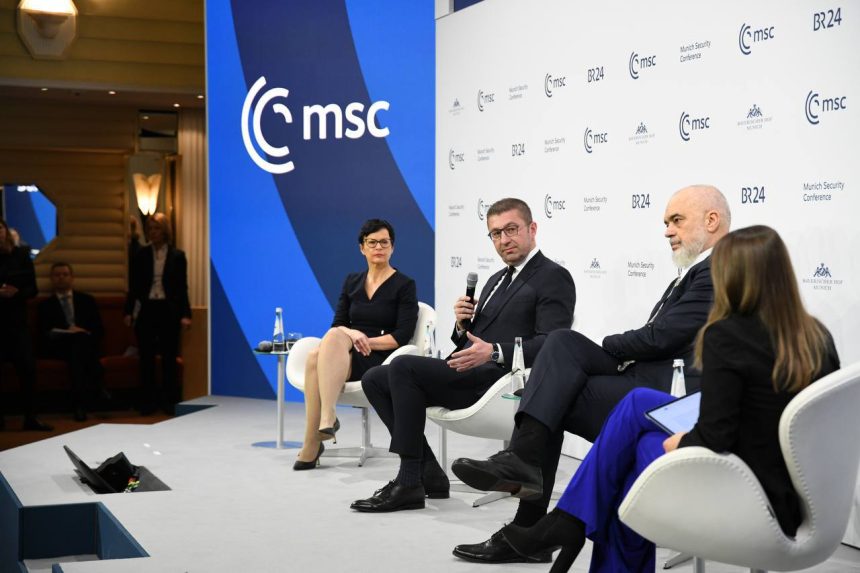Shkup, 17 shkurt – Përshpejtimi i integrimit të Ballkanit Perëndimor ishte një nga panelet e Konferencës së 61-të të Sigurisë në Mynih që përfundoi dje në kryeqytetin e Bavarisë. Kryeministri Hristijan Mickoski, i cili mori pjesë në këtë panel së bashku me Komisioneren për Zgjerim të BE-së Marta Kos dhe kryeministrin shqiptar Edi Rama, tha se në vend të evropianizimit të Ballkanit, ne jemi përballë ballkanizimit të Evropës dhe standardeve të dyfishta nga BE-ja. Eurokomisionerja Kos, ndërkaq, tha se gjatë këtij mandati të Komisionit Evropian dëshirojnë t’i përfundojnë negociatat për anëtarësim me dy-tri shtete. Në margjinat e konferencës të shtunën u zhvillua takimi i parë ndërmjet ministrit të Jashtëm Timço Mucunski dhe homologut të tij bullgar Georg Georgiev, me të cilin biseduan për nevojën për të zhbllokuar rrugën tonë drejt anëtarësimit të plotë në BE.