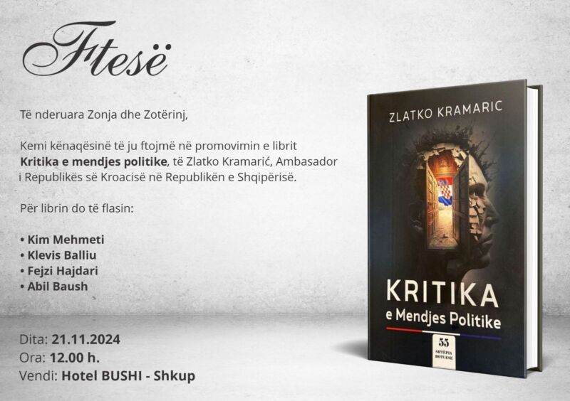 Nesër në Shkup do të bëhet promovimi i librit të Ambasadorit kroat në Tiranë, Zlatko Kramariç.