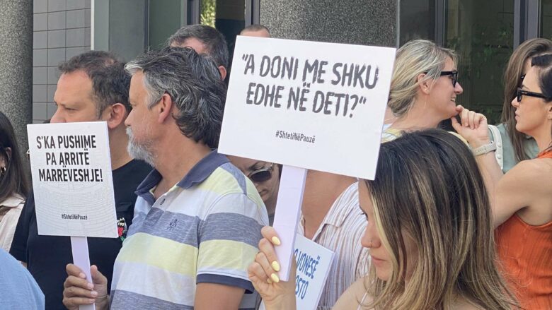 “Kur t’ju bëhet boll, kallëzoni”, “A doni me shku edhe në deti” – përfaqësues të shoqërisë civile protestojnë para Kuvendit