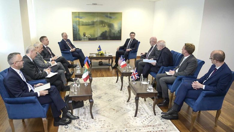 Kryeministri i Kosovës, Albin Kurti, i shoqëruar nga zëvendëskryeministri i parë, Besnik Bislimi dhe zëvendësministri i Punëve të Jashtme dhe Diasporës, Kreshnik Ahmeti, takoi sot ambasadorët dhe përfaqësuesit diplomatikë të shteteve të QUINT-it dhe Shefin e Zyrës së Bashkimit Evropian në Kosovë.