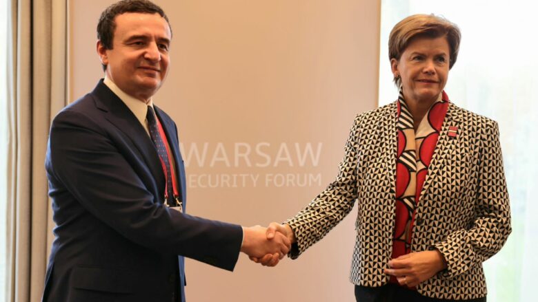 Në kuadër të Forumit të Varshavës për Siguri, kryeministri i Kosovës, Albin Kurti, zhvilloi takimin e tij të parë bilateral me ministren e Punëve të Jashtme të Letonisë, Baiba Braže.