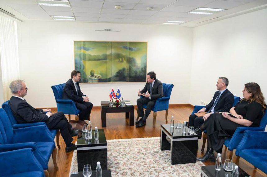 “Duke shprehur kënaqësinë për takimin me të dy përfaqësuesit, kryeministri vlerësoi marrëdhëniet e ngushta ndërmjet Republikës së Kosovës dhe Norvegjisë dhe shprehu mirënjohje për mbështetjen e vazhdueshme të Norvegjisë në zhvillimin socio-ekonomik të Kosovës”, thuhet në njoftim.