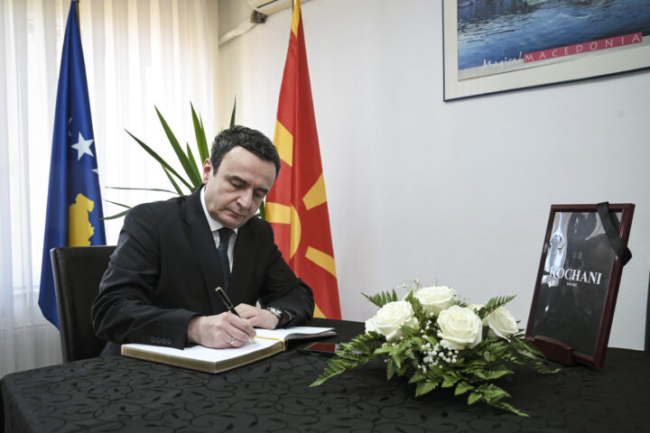 Shkup, 19 mars – Kryeministri i Kosovës, Albin Kurti ka vizituar Ambasadën e Maqedonisë së Veriut në Kosovë me ç’rast shkroi në Librin e Ngushëllimeve dedikuar viktimave të tragjedisë në Koçan.
