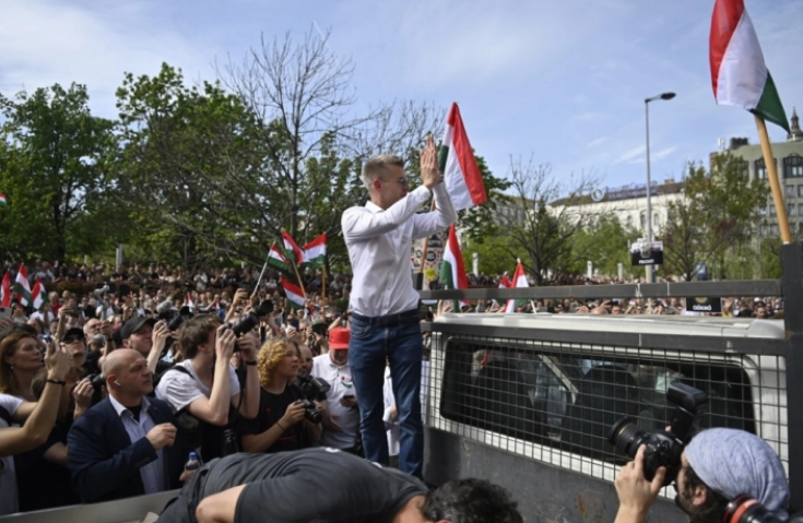Duke valëvitur flamuj, dhjetëra-mijëra njerëz u mblodhën sot në Budapest për të protestuar kundër kryeministrit hungarez Viktor Orban, ndërsa lideri i partisë në rritje të opozitës Tisza u zotua ta bënte Hungarinë pjesë të një Evrope të fortë dhe t’i jepte fund sundimit 15-vjeçar të Orban.