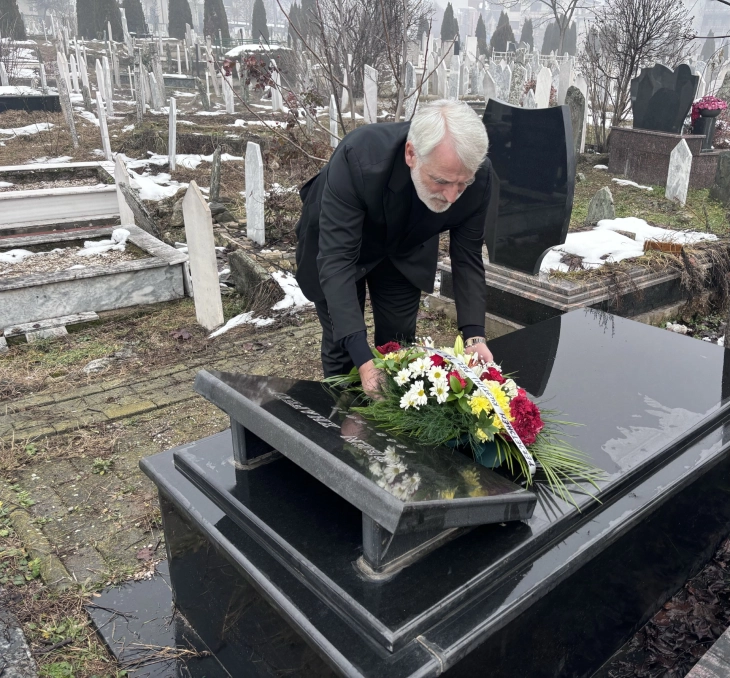 Shkup, 24 janar – Kryetari i PDSH-së, Menduh Thaçi sot kreu homazhe dhe vendosi kurorë me lule tek varri i Arbën Xhaferit me rastin e 77-vjetorit të lindjes së të ndjerit.