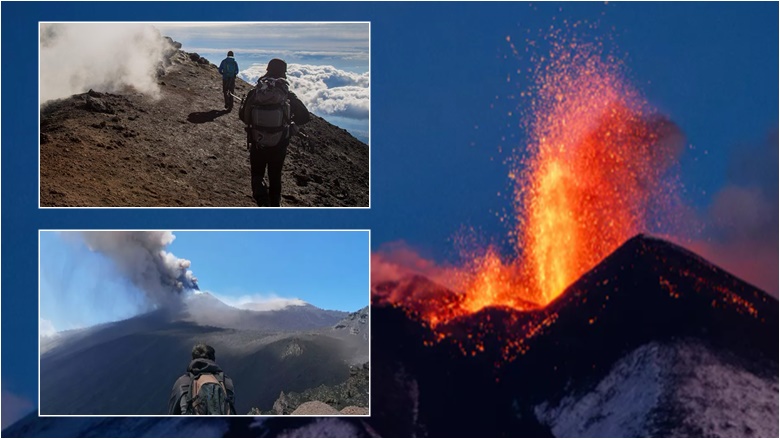 Turistë nga e gjithë bota u ngjitën në malin Etna të Sicilisë gjatë fundjavës për t’u afruar me grykën e vullkanit dhe për të parë shpërthimin e tij të fundit.