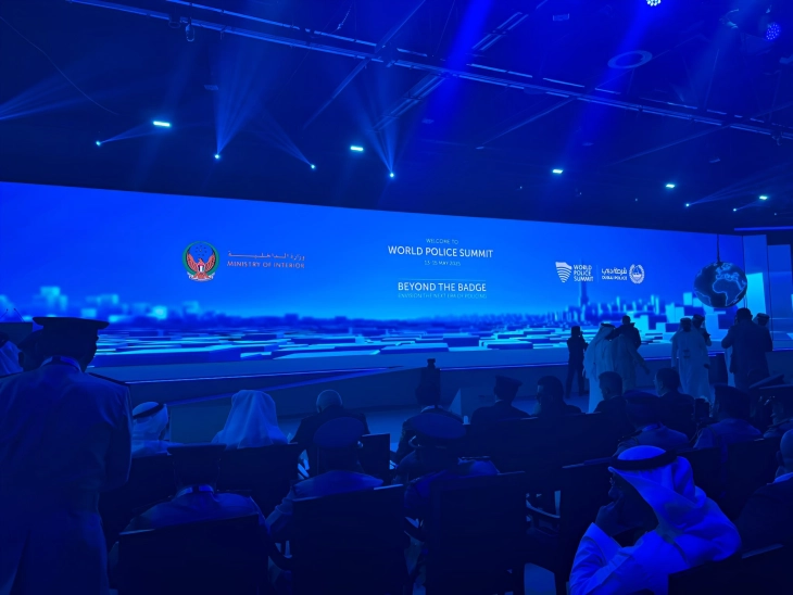 Shkup, 15 maj – Ministri i Punëve të Brendshme, Pançe Toshkovski në kuadër të vizitës në Emiratet e Bashkuara Arabe, mori pjesë në Samitin botëror të policisë në Dubai – platformë globale për bashkëpunim të sigurisë, inovacione teknologjike dhe e ardhmja në punën e policisë, e cila bashkon liderë dhe ekspertë policorë prej mbi 100 shtete.
